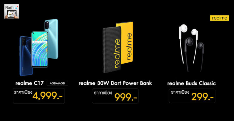 สำหรับ realme 30W Dart Charge Power Bank มาในราคาเพียง 999 บาท และหูฟัง realme Buds Classic มาในราคาเพียง 299 บาท วางจำหน่ายแล้ววันนี้ที่ realme Brand Shop ทุกสาขา