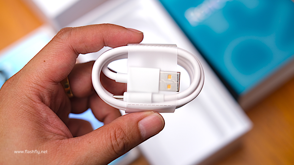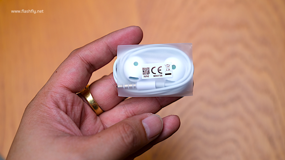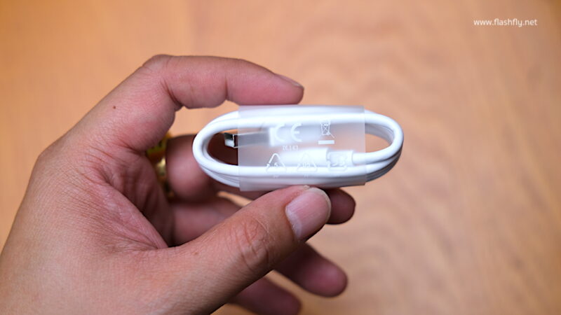 ชั้นล่างสุดเป็นที่เก็บหูฟัง 3.5 มิลลิเมตร, สายเคเบิล USB Type-C และ อุปกรณ์ชาร์จแบตเตอรี่ 18W Power Adapter