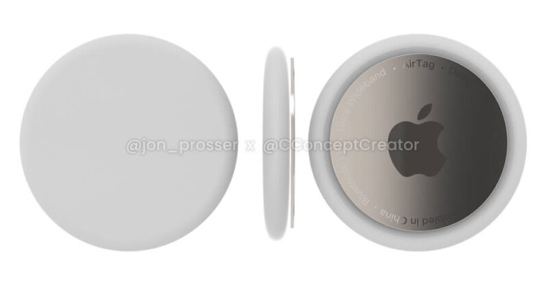 AirTags เป็นผลิตภัณฑ์ที่ยังคงเป็นความลับของ Apple ยังไม่มีภาพหลุดเครื่องจริงหรือต้นแบบออกมา แต่ก็เป็น Jon Prosser ที่ได้แชร์ภาพเรนเดอร์ของ AirTags ให้ได้เห็นในเดือนกันยายนที่ผ่านมา โดยมีลักษณะเป็นแผ่นวงกลมขนาดเล็ก ผลิตจากโลหะและหุ้มด้วยขอบยาง ด้านหลังมีโลโก้ Apple ขนาดใหญ่ และพิมพ์ข้อความ AirTag – Designed by Apple in California – Assembled in China – Bluetooth LE – Ultra Wideband ไว้ตามขอบ