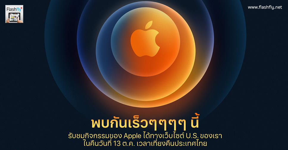 Apple กำลังจะจัดกิจกรรมเสมือนจริงที่มีชื่อว่า Hi, Speed ในเวลา 0.00 น. ของวันที่ 14 ตุลาคมนี้ ตามเวลาในประเทศไทย ซึ่งคาดว่าจะเป็นงานเปิดตัว iPhone รุ่นใหม่ และสามารถติดตามรับชมได้พร้อมกันทั่วโลกจาก 3 ช่องทางต่อไปนี้