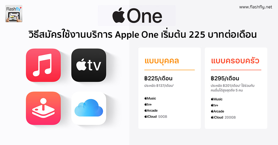 วันนี้ Apple ได้เปิดให้บริการ Apple One ทางการในประเทศไทยแล้ว โดยเป็นบริการที่รวม iCloud ,Apple Music,Apple TV+ และ Apple Arcade ทั้งหมดไว้ในแพ็คเกจเดียวกันในราคาสุดประหยัด สามารถใช้งานได้บนทุกอุปกรณ์ของ Apple ด้วยการสมัครสมาชิกง่าย ๆ เพียงครั้งเดียวมีในเลือก 2 แพ็คเกจดังนี้