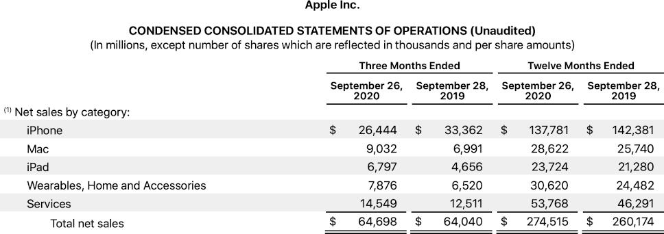 Apple กล่าวว่ายอดขาย Mac ที่เพิ่มขึ้นในปีงบประมาณ 2020 เมื่อเทียบกับปีงบประมาณ 2019 ปัจจัยหลักมาจากยอดขาย MacBook Pro ที่สูงขึ้น เนื่องจาก Apple เปิดตัว MacBook Pro รุ่นใหม่ 16 นิ้วในไตรมาสแรกของปีงบประมาณ ตามมาด้วย MacBook Pro ขนาด 13 นิ้ว ที่ได้รับการรีเฟรชในไตรมาสที่ 3 ทั้งคู่มาพร้อมโปรเซสเซอร์ Intel ที่เร็วขึ้น และ Magic Keyboard ที่ทนทานกว่าเดิม