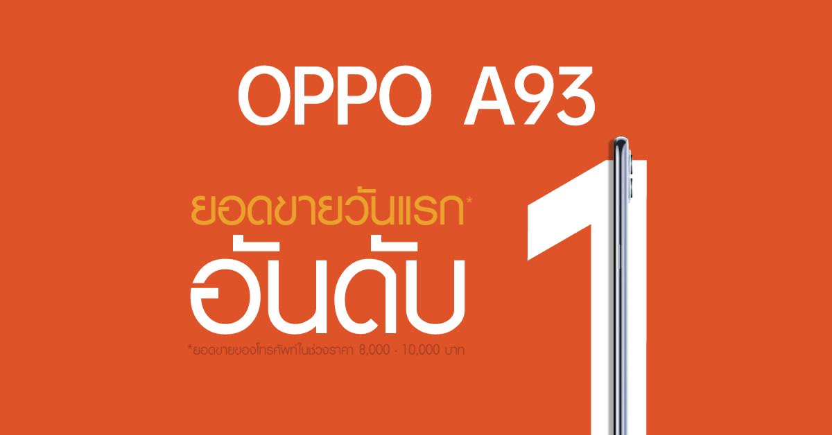 OPPO พร้อมวางจำหน่าย OPPO A93 สมาร์ทโฟนดีไซน์บางเฉียบ พร้อมหน้าจอ Super AMOLED และ 6 กล้อง AI Portrait ตอบโจทย์ทุกความบันเทิงด้วย RAM 8GB ROM 128GB และ 18W Fast Charge ในราคา 8,999 บาท ที่ OPPO Brand Shop และ ตัวแทนจำหน่ายทั่วประเทศ ซึ่งนับว่าเป็นสมาร์ทโฟนที่มาแรงจริงๆ ด้วยกระแสตอบรับที่ดีอย่างล้นหลาม กับยอดขายอันดับ 1 ของตลาดสมาร์ทโฟนช่วงราคา 8,000 – 10,000 บาท ตั้งแต่วางจำหน่ายวันแรก!