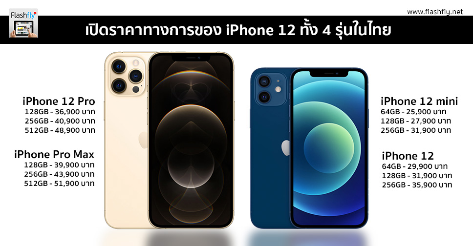 และล่าสุด Apple ก็ได้ประกาศราคาทางการของ iPhone 12 mini,iPhone 12 ,iPhone Pro และ iPhone Pro Max ทุกความจุในประเทศไทยออกมาเป็นที่เรียบร้อยแล้วดังนี้