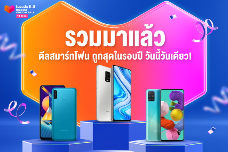 โปรปังขนาดนี้ ใครกำลังมองหาสมาร์ทโฟน ต้องห้ามพลาด 11 พฤศจิกายนนี้ ตั้ง Reminder แล้วไปช้อปสมาร์ทโฟนดีล ‘ถูกสุดในรอบปี’ กับมหกรรมช้อปปิ้งครั้งใหญ่ ‘Lazada Biggest One Day Sale’ ที่ลาซาด้า คลิก www.Lazada.co.th/11-11