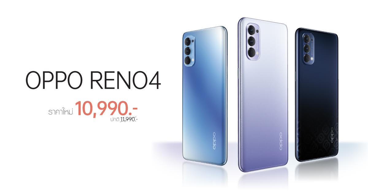สำหรับใครที่ไม่อยากตกเทรนด์ สามารถเป็นเจ้าของ OPPO Reno4 ได้ในราคาสุดพิเศษเพียง 10,990 บาทจากราคาเปิดตัว 11,990 บาท บอกเลยว่าโปรนี้เด็ดจริงๆ ใครที่อยากได้สมาร์ทโฟนที่ตอบโจทย์ทุกไลฟ์สไตล์