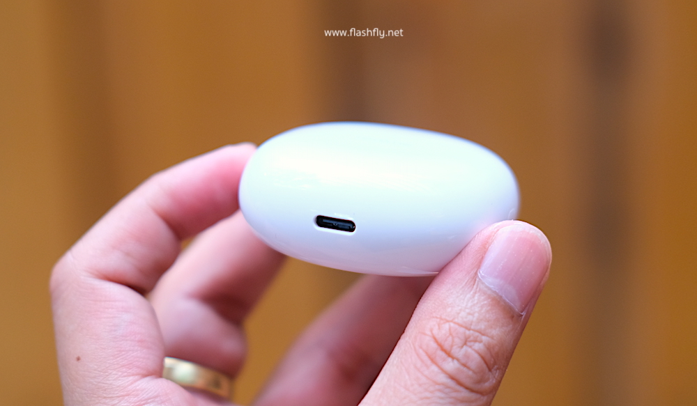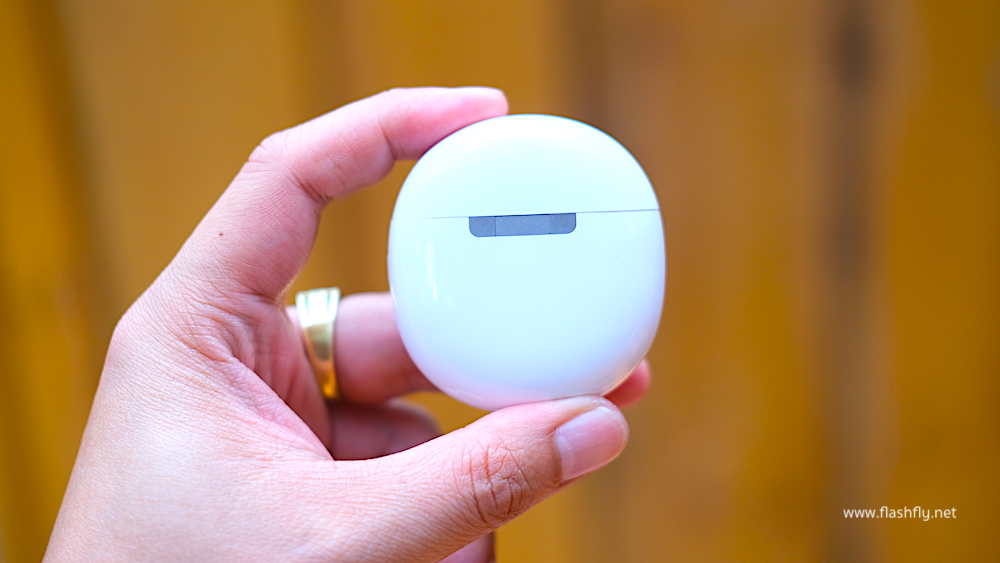 ตัวหูฟังใช้สีเดียวกับเคส แต่ละข้างมีน้ำหนักเบาเพียง 5 กรัม ได้รับการออกแบบตามหลักสรีรศาสตร์ มาพร้อมจุกหูฟังซิลิโคนที่เป็นมิตรกับผิวหนัง จึงสวมใส่ได้อย่างสบายหูตลอดทั้งวัน แถมจุกหูฟังมาให้ 3 คู่ ในขนาดที่แตกต่างกัน เพื่อให้ผู้ใช้งานแต่ละคนสวมใส่ได้อย่างมั่นคงมากที่สุด