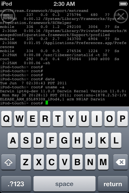 หลังจากที่ Apple แถลงเปิดตัว iOS 5 ไปเมื่อคืนที่ผ่านมาในงาน WWDC แล้วก็มีการปล่อยตัว Beta ในคืนนั้นผ่านมาเพียงไม่ถึง 24 ชม. กลุ่ม Dev-team ก็ประกาศออกมาแล้วว่าสามารถ jailbreak iOS 5 ได้เรียบร้อยบน iPod touch 4G ติดแต่เพียงยังไม่สามารถรีสตาทเครื่องได้ ต้องเชื่อมต่อกับคอมพิวเตอร์ทุกครั้งในการปิดเปิดเครื่อง พร้อมภาพสกรีนช็อตในการติดตั้ง Cydia เรียบร้อย แต่จะปล่อยเมื่อไรต้องติดตามอีกที