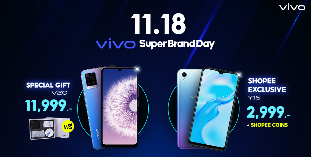 พิเศษสุดๆกับ Vivo Super Brand Day ครั้งเฉพาะ V20 Series เท่านั้น เพียงซื้อมือถือ Vivo V20 Pro, V20 หรือV20 SE รุ่นใดก็ได้ ก็มีสิทธิ์ได้รับ Voucher ส่วนลด มูลค่า 6000.- บาท หรือ หูฟัง Vivo Wireless Sport Earphone ไปเลย