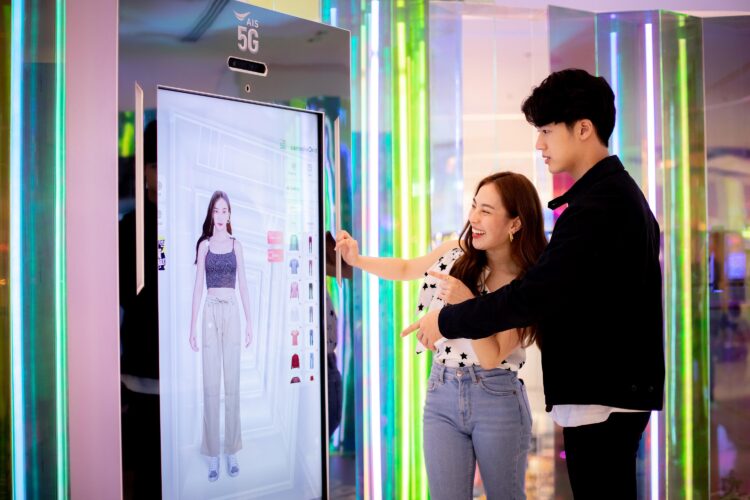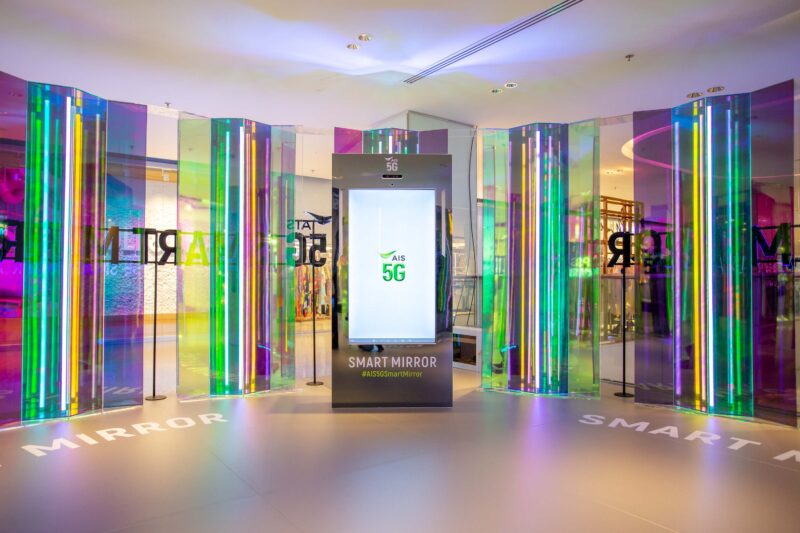 ความพิเศษของเครือข่าย 5G และเทคโนโลยี AI ที่นำมาใช้บน AIS 5G SMART MIRROR นี้ จะทำให้เมื่อลูกค้าส่องกระจกอัจฉริยะแล้ว ระบบจะสร้างรูปจำลองแบบเสมือนจริง เพื่อช่วยให้ลูกค้าเห็นภาพชัดเจนขึ้น สามารถเปลี่ยนทรงผม ปรับสรีระร่างกาย เลือกไซส์ และเลือกสไตล์เสื้อผ้าได้หลากหลายแบรนด์ พร้อมแสดงผลได้อย่างรวดเร็วผ่านเครือข่าย 5G ทำให้ลูกค้าไม่ต้องเสียเวลาไปลองเสื้อผ้าจากหลายๆ ร้านให้ยุ่งยาก แต่สามารถรู้ข้อมูลสินค้าและราคาได้ก่อนตัดสินใจซื้อได้ในที่เดียว โดยมีร้านค้าแบรนด์ดังที่ร่วมรายการมากมาย ได้แก่ CARNIVAL, H&M, MLB, MICHAEL KORS, POLO RALPH LAUREN, PULL&BEAR, SUPERDRY, TOPSHOP/TOPMAN, UNIQLO และ ZARA