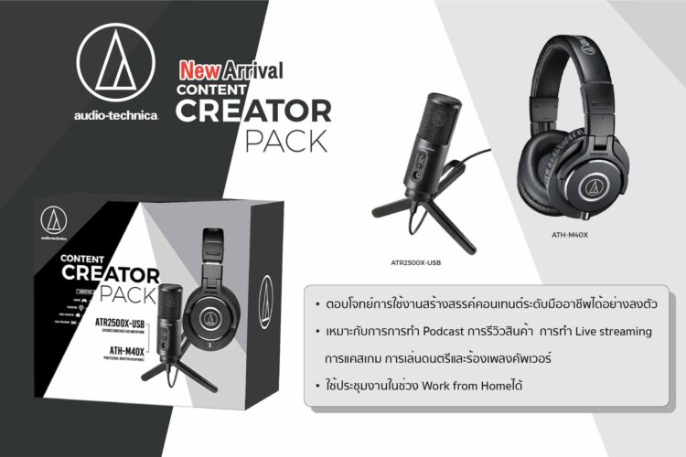 บริษัท อาร์ทีบี เทคโนโลยี จำกัด ผู้นำนวัตกรรมสินค้า Gadget ระดับคุณภาพของเมืองไทยส่งแพ็กหูฟังพร้อมไมโครโฟน เอาใจผู้ผลิตคอนเทนต์ ภายใต้แบรนด์ Audio-Technica ด้วยชุด Content Creator Pack โดยภายในแพ็กประกอบด้วย หูฟังคุณภาพสูงจากตระกูล M-Series รุ่น ATH-M40x ที่มาพร้อม ไมโครโฟนแบบคอนเดนเซอร์ (Condenser Microphone) รุ่น ATR2500X-USB เพื่อตอบโจทย์การใช้งานสร้างสรรค์คอนเทนต์ระดับมืออาชีพได้อย่างลงตัว ไม่ว่าจะเป็นการแคสเกม การเล่นดนตรีและร้องเพลงคัพเวอร์ การทำ Podcast การรีวิวสินค้า การทำ Livestreaming แลกเปลี่ยนประสบการณ์ต่างๆ หรือแม้กระทั่งการประชุมงานในช่วง Work from Home ชุด Content Creator จาก Audio-Technica ก็จะสามารถรองรับการทำให้ได้อย่างไม่ผิดหวังแน่นอน