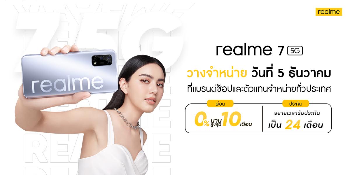 เป็นเจ้าของ realme 7 5G สมาร์ทโฟน 5G ทรงพลัง ในวันที่ 5 ธันวาคมนี้ พร้อมโปรโมชั่นผ่อน 0% และขยายเวลารับประกัน 24 เดือน