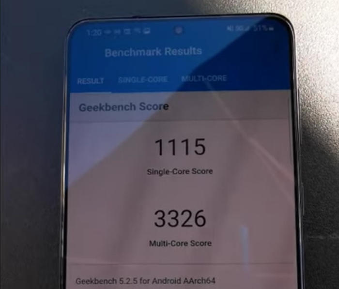 Random Stuff 2 พยายามแพนกล้องให้เห็นดีไซน์ในภาพรวมของ Galaxy S21 Plus ก่อนจะทดสอบประสิทธิภาพให้เห็นด้วยแอพพลิเคชั่น Geekbench ทำให้เราได้เห็นว่าสมาร์ทโฟนที่อยู่ในมือของเขา ใช้รหัสรุ่น SM-G996U ทำงานบนพื้นฐาน Android 11 และใช้ชิปประมวลผล Qualcomm Snapdragon 888 ซึ่งเป็นเวอร์ชั่นที่วางจำหน่ายในสหรัฐอเมริกา