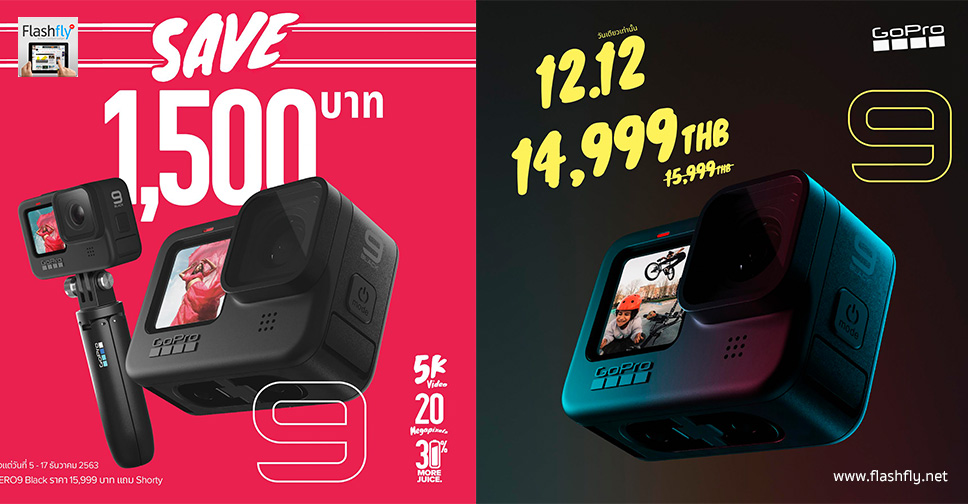 GoPro เอาใจสาวกสายเที่ยวจัดสองโปรโมชั่นเด็ดให้แฟนๆได้เลือกสรรในแคมเปญ 12.12 ลดส่งท้ายปีครั้งใหญ่ ด้วยโปรโมชั่นแรกที่จะช่วยคุณประหยัดเงินในกระเป๋า เพียงแค่คุณซื้อ GoProHERO9 Black ระหว่างวันที่ 5 – 17 ธันวาคม 2563 ในราคา 15,999 บาท รับไปเลยทันทีด้ามจับ Shorty มูลค่า 1,500 บาท ฟรี!! หรือใครที่อยากได้ GoPro HERO9 ในราคาพิเศษ GoPro ก็จัดให้อีกหนึ่งโปรโมชั่นทางเลือกกับ GoPro HERO9 Black ในราคาพิเศษเพียง 14,999 จากปกติราคา 15,999 บาท เฉพาะวันที่ 12 ธันวาคม 2563 นี้เท่านั้น ทั้งสองโปรโมชั่นนี้มีให้ทุกท่านได้จับจองได้ทั้งบนออนไลน์และหน้าร้านทั่วประเทศ สามารถตรวจสอบรายชื่อตัวแทนจำหน่ายอย่างเป็นทางการได้ที่ https://bit.ly/goprodealer หรือซื้อทันทีผ่าน GoPro Official Store ที่ https://bit.ly/3eQma2v แล้วเราจะได้มาเป็นครอบครัว GoPro ด้วยกัน!
