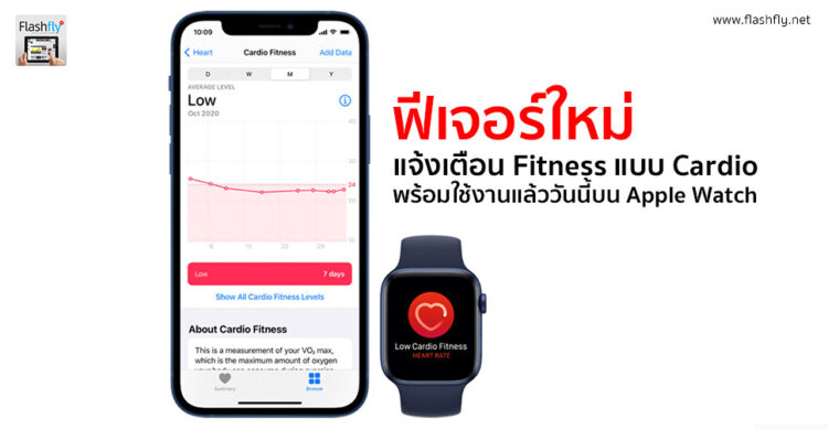ผู้ใช้ Apple Watch สามารถเข้าไปที่แอพสุขภาพใน iPhone เพื่อตั้งค่าคุณสมบัติระดับฟิตเนสแบบคาร์ดิโอและเปิดการแจ้งเตือนฟิตเนสแบบคาร์ดิโอได้