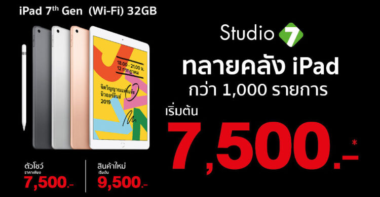 มหกรรมลดราคาสินค้าครั้งยิ่งใหญ่ BaNANA x Studio 7 ลดทลายคลัง ยกกำลัง 2 มอบข้อเสนอ iPad ราคาพิเศษ เริ่มต้นเพียง 7,500 บาท พร้อมเคลียร์สินค้า iPad กว่าพันรายการ และสินค้า Apple กว่าหมื่นรายการ ลดสูงสุด 80% และสามารถผ่อนสบาย 0% นาน 10 เดือน กับธนาคารที่ร่วมรายการ