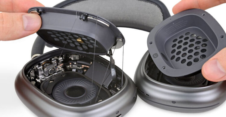 หลังจาก AirPods Max เริ่มถูกชำแหละ iFixit พบว่าไม่ใช่เรื่องง่ายในการเปิดหูฟังเพื่อเข้าถึงชิ้นส่วนภายใน ส่วนประกอบต่างๆ ถูกยึดด้วยกาวน้อยมาก และภายในเอียร์คัพจะพบบอร์ดลอจิก 2 แผ่น ที่เต็มไปด้วยชิป