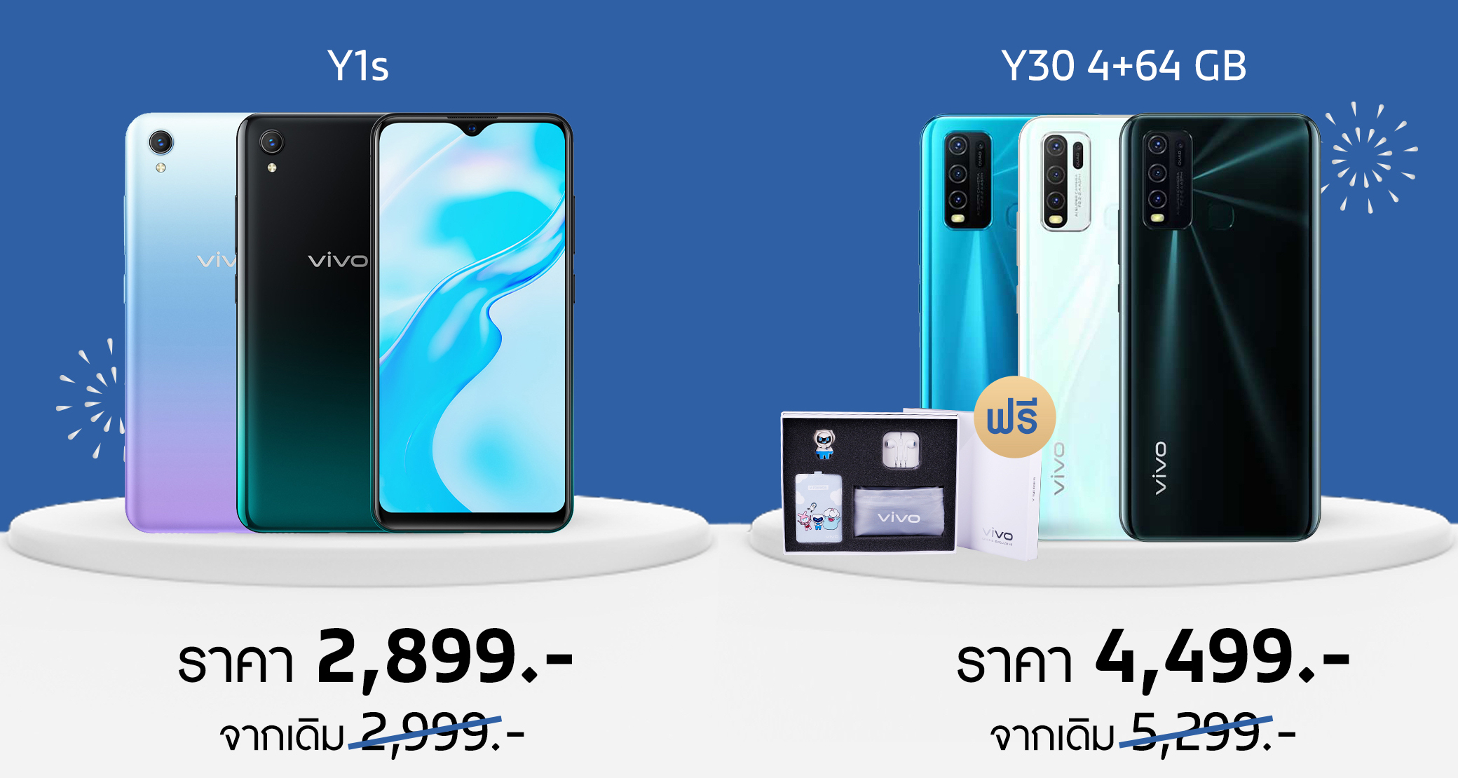และยังมีมือถืออีก 2 รุ่นที่เป็น Online Excusive จัดมาลดราคาเอาใจแฟนๆ รุ่นแรก Y30(4+64GB) เหลือเพียง 4490 บาทเท่านั้น และรุ่นเล็กสเปคแรงที่ขายดีเป็นเทน้ำเทท่า อย่างรุ่น Y1S ราคาปกติก็ถูกอยู่แล้ว ยังลดอีกเหลือเพียง 2,899 บาท คุ้มกว่านี้ ไม่มีอีกแล้ว อย่ารอช้ารีบไปซื้อกันได้เลย