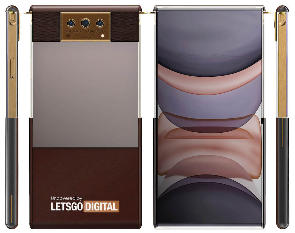 ล่าสุด เว็บไซต์ LetsGoDigital ได้นำภาพร่างจากสิทธิบัตรสมาร์ทโฟนจอยืดได้ของ OPPO มาสร้างเป็นคอนเซ็ปต์เพื่อให้เห็นภาพที่ชัดเจนขึ้น และดูเหมือนจะเป็นรุ่นพิเศษที่มีความหรูหรามากขึ้น ผ่านการออกแบบโดย Tom Ford