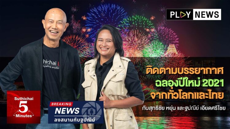 PLAY NEWS แพลตฟอร์มข่าวเพื่อชาวไทย จึงขอมอบคอนเทนต์ข่าวรายงานพิเศษ ให้คนไทยได้ติดตามบรรยากาศเฉลิมฉลองปีใหม่ 2021 จากประเทศต่างๆ ทั่วทุกมุมโลก ที่ล้วนแล้วแต่เป็นแลนด์มาร์คสำคัญของการเคาท์ดาวน์ ซึ่งเชื่อว่าจะมีการปรับเปลี่ยนรูปแบบการฉลองสไตล์นิวนอร์มัลกันอย่างแน่นอน เอ็กซ์คลูซีฟสุดกับการเล่าข่าวโดย สุทธิชัย หยุ่น ในรายการ Suthichai 5 Minutes รวมถึง เกาะติดบรรยากาศฉลองปีใหม่ของชาวไทย โดย แยม – ฐปณีย์ เอียดศรีไชย ในรายการ Breaking News ลงสนามกับฐปณีย์ เพื่อเติมเต็มช่วงเวลาพิเศษ ให้คนไทยมีความหวังและพลังใจพร้อมก้าวต่อไปในปีใหม่ 2021 นี้