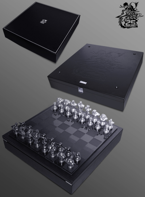 เนื่องในโอกาศเกมต่อสู้ในตำนานอย่าง Street Fighter มีอายุครบรอบ 25 ปี ทางค่าย Capcom จึงได้จัดโปรโมชั่นและแคมเปญพิเศษ รวมไปถึงของพรีเมี่ยมต่างๆ ออกมาให้เหล่าสาวกได้สะสมกัน โดยหมากรุกชุดนี้เป็นหนึ่งในเซตพรีเมี่ยมที่ทางค่าย Capcom ทำออกมาเพียง 5,000 ชุดเท่านั้น จะสวยงามน่าสะสมขนาดไหนรับชมได้ทางด้านล่างเลยครับ สนนราคาอยู่ที่ 299.95 เหรียญสหรัฐ (ประมาณ 9,500 บาท)