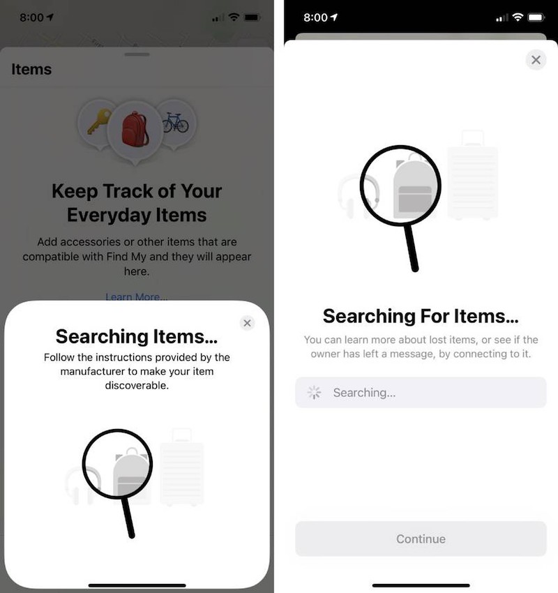เมื่อใช้วิธีพิมพ์ findmy://items ลงในแอพ Safari บน iPhone หรือ iPad จะนำทางไปยังแอพ Find My ทีมี User Interface ใหม่ สามารถค้นหาไอเท็ม หรือ สิ่งของที่ต้องการ คาดว่าถูกเตรียมไว้สำหรับ AirTags อุปกรณ์ติดตามของหายที่ Apple เตรียมเปิดตัวในเร็ว ๆ นี้