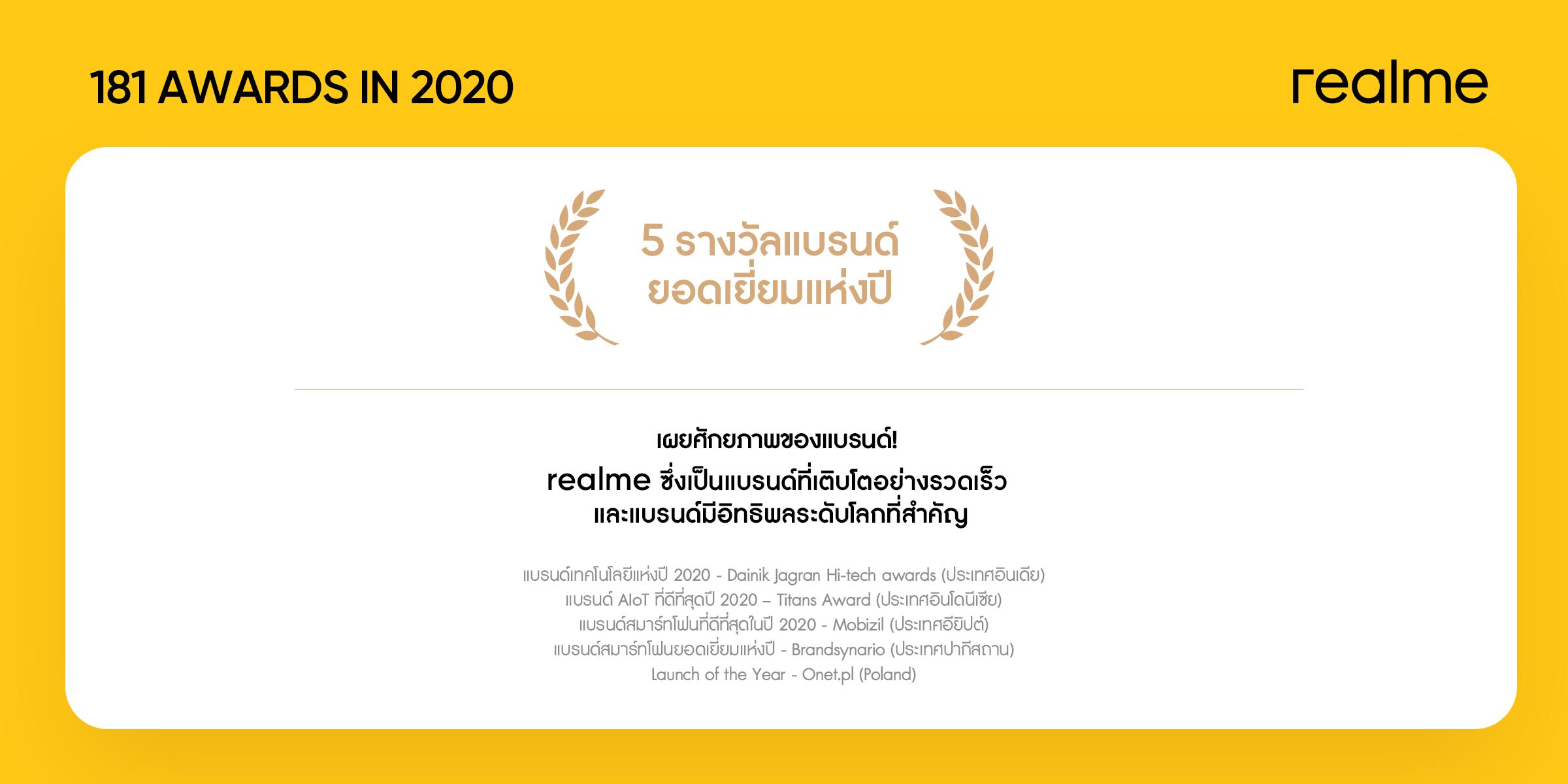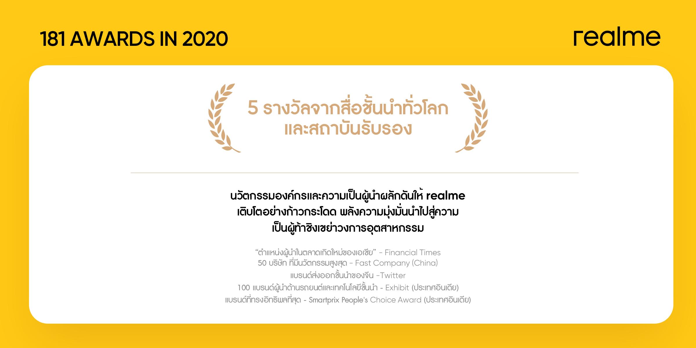 realme ครองใจฐานแฟนและกลุ่มลูกค้าใหม่อย่างต่อเนื่อง กวาดรางวัลระดับโลกกว่า 200 รางวัล ตอกย้ำการเติบโตและสร้างชื่อเสียงที่โด่งดังในปี 2020