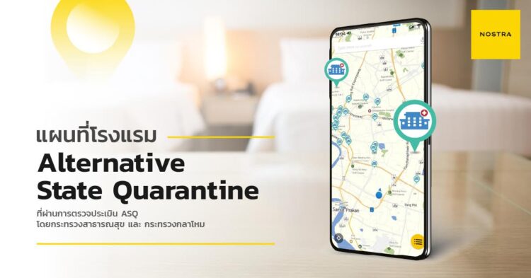 NOSTRA ผู้ให้บริการข้อมูลแผนที่ดิจิทัล และโซลูชันด้าน IoT โดย บริษัท โกลบเทค จำกัด ผู้พัฒนา นอสตร้า แมพ (NOSTRA Map) แอปพลิเคชันแผนที่นำทาง เพิ่มข้อมูลพิกัดโรงแรมที่ผ่านการตรวจประเมิน Alternative State Quarantine (ASQ) หรือ “บริการสถานที่กักตัวทางเลือก” ที่ได้รับอนุมัติจากหน่วยงานกระทรวงสาธารณสุขและกระทรวงกลาโหมตามประกาศบนเว็บไซต์ทางการ ซึ่งผู้กักตัวเป็นผู้รับผิดชอบค่าใช้จ่ายเอง แสดงบนแผนที่เพื่ออำนวยความสะดวกให้กับประชาชนเบื้องต้น และสนับสนุนมาตรการป้องกันโควิด-19 ก่อนได้รับอนุญาตให้เดินทางต่อไปยังจุดหมายปลายทาง ผ่านแอปพลิเคชันนำทาง NOSTRA Map ดาวน์โหลดได้ฟรี รองรับได้ทั้ง iOS และ Android สามารถใช้บริการได้แล้ววันนี้