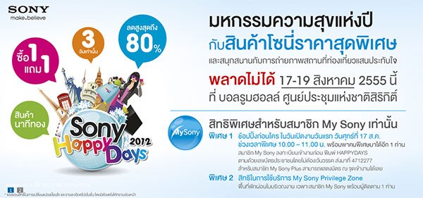ราคามือถือ Sony Xperia ในงาน Sony Happy Day วันที่ 17-19 สิงหาคม 55 นี้ ที่ บอลรูมฮอลล์ ศูนย์ประชุมแห่งชาติสิริกิติ์