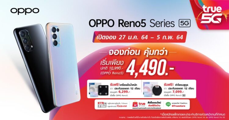 ทรู 5G จับมือ OPPO มอบโปรโมชั่นสุดแรง! เมื่อจอง OPPO Reno5 Series 5G ที่สุดของวิดีโอ Portrait ในราคาเริ่มต้นเพียง 4,490 บาท!