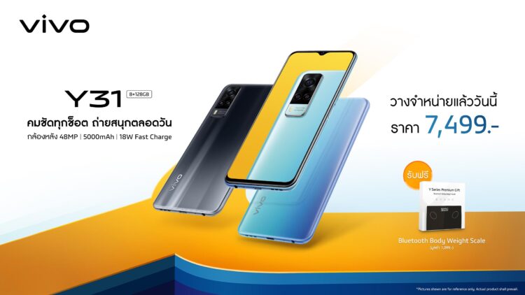 Vivo แบรนด์สมาร์ตโฟนชั้นนำระดับโลก เปิดตัว Vivo Y31 สมาร์ตโฟนรุ่นใหม่ล่าสุดประจำตระกูล Y Series ในประเทศไทยอย่างเป็นทางการ ชูจุดเด่นด้วยกล้องหลังความละเอียดสูงถึง 48 ล้านพิกเซล คมชัดทุกช็อต ถ่ายสนุกตลอดวัน พร้อมหน้าจอ Halo FullView Display ขนาด 6.58 นิ้ว ความละเอียดระดับ FHD+ 1080P แบตเตอรี่ 5,000 mAh รองรับระบบชาร์จไว 18W และคุณภาพเสียงสุดทรงพลัง ทำงานบนระบบปฏิบัติการ Android 11 ในราคาเพียง 7,499 บาท