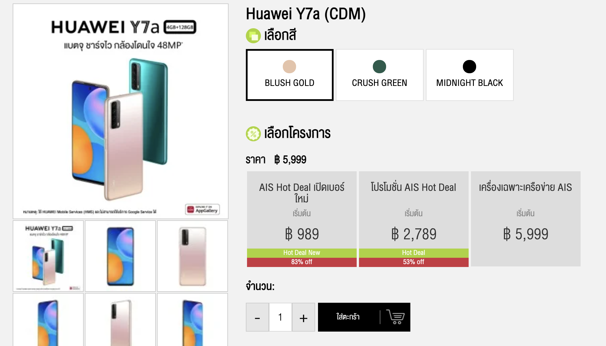 - เป็นเจ้าของ HUAWEI Y7a ได้ที่นี่ >> https://store.ais.co.th/th/mobile-phone/huawei/huawei-y7a-cdm.html