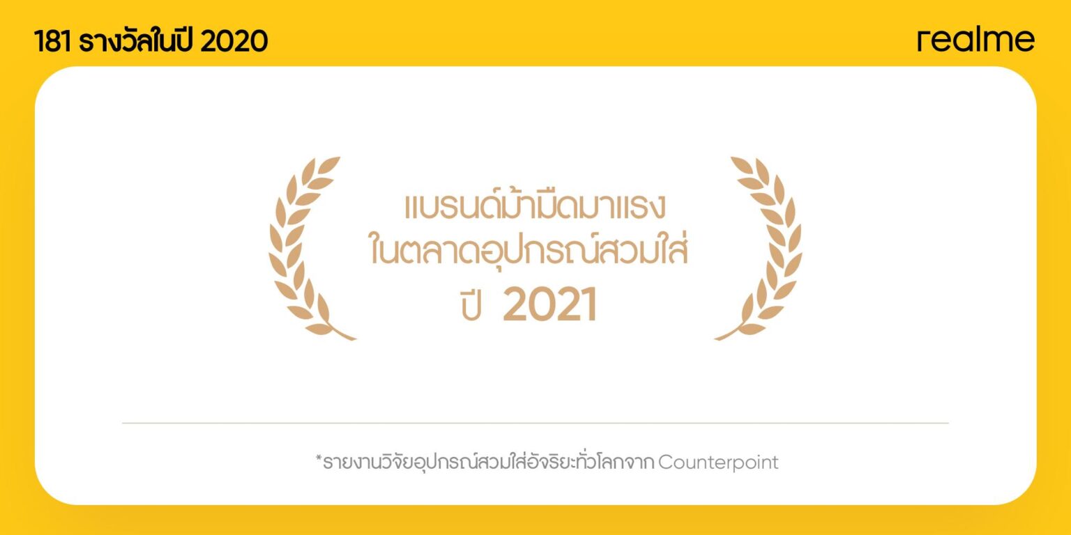 ในปี 2020 ที่ผ่านมา เป็นช่วงเวลาของการเปลี่ยนผ่านจากเทคโนโลยีการสื่อสาร 4G ไปสู่ 5G ในหลายตลาดทั่วโลก รวมถึงในประเทศไทย และทาง realme ก็มีความมุ่งมั่นที่จะนำประสบการณ์ 5G ให้เข้าถึงผู้ใช้งานทุกคน ด้วยการเป็นแบรนด์สมาร์ทโฟนรายแรกที่นำเทคโนโลยี 5G มาสู่สมาร์ทโฟนในราคาต่ำกว่า 10,000 บาท นั่นก็คือ realme 7 5G