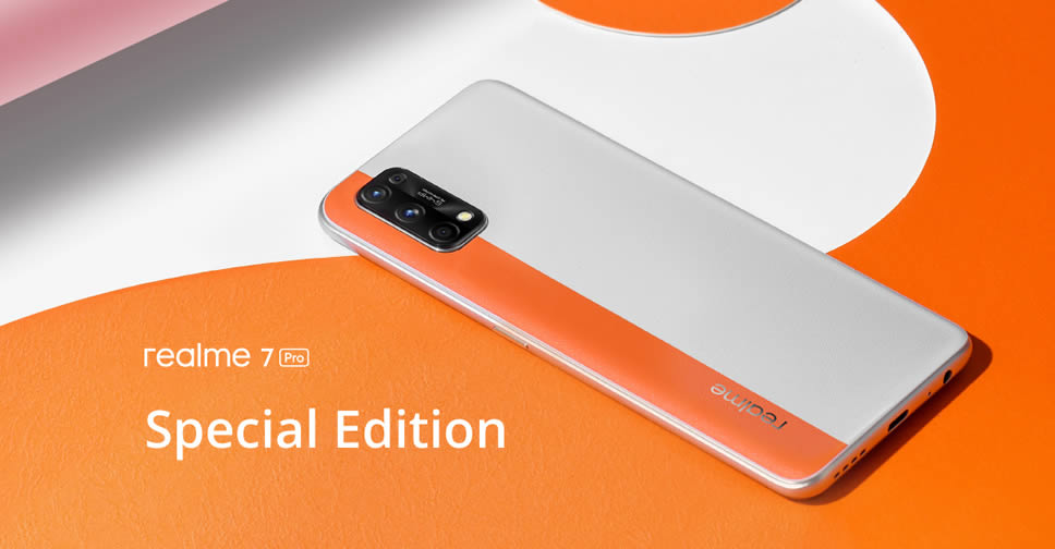 realme 7 Pro Limited Edition มาในสี Horizon Orange ซึ่งเป็นครั้งแรกที่ realme ใช้วัสดุหนัง Vegan Micrograin เป็นมิตรกับสิ่งแวดล้อมในการออกแบบ ด้วยแรงบันดาลใจจากสีส้มของแสงอาทิตย์รุ่งอรุณ ณ ริมขอบฟ้า