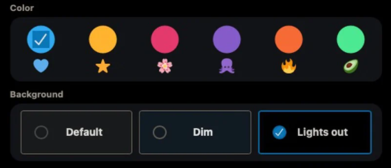 แต่ถ้าต้องการจะปรับกลับเป็นธีมสีแบบเดิม Twitter ก็มีให้ตั้งค่าแบบเดิมในชื่อ “Dim” โดยการกดที่การตั้งค่าเมนูทางซ้ายและเลือก Display หรือการแสดงผล จากนั้นก็จะเห็นเมนูการตั้งค่า Default Dim และ Lights out ซึ่งก็จะขึ้นอยู่กับผู้ใช้แล้วว่าต้องการให้แสดงผลเป็นแบบไหน