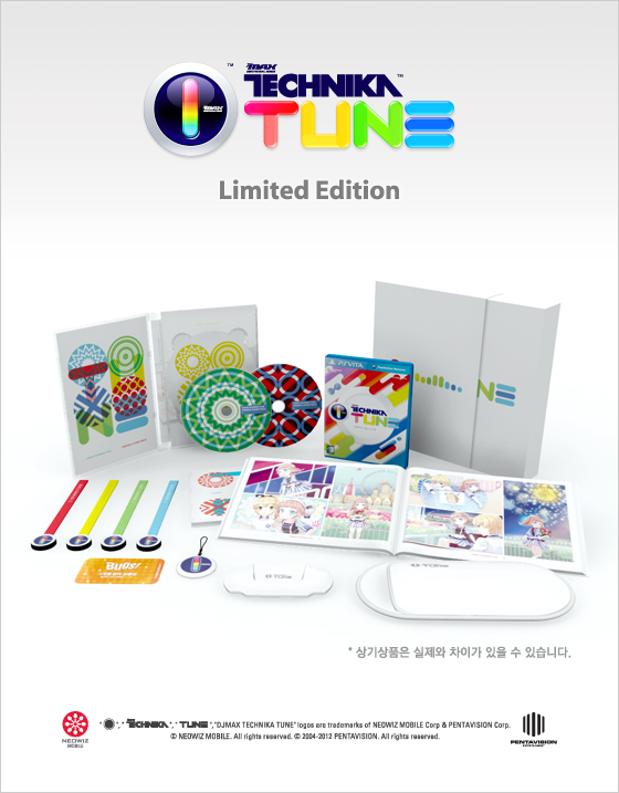 Neowiz Mobile และ Pentavision เผยโฉมชุด Limited Edition ของเกม DJMax Technika Tune บนเครื่อง PS Vita ออกมากระตุ้นต่อมความอยากของเหล่าสาวกกันอีกครั้ง เพราะตัวเกมใกล้จะได้ฤกษ์วางจำหน่ายในวันที่ 7 เดือนหน้านี้แล้ว ในชุดจะประกอบไปด้วย 2 disc soundtrack, หนังสือ artwork หนาถึง 124 หน้า, ซองผ้าและเคสสำหรับเครื่อง PS Vita, สายรัดข้อมือ, screen cleaner และที่ขาดไม่ได้แผ่นเกม DJMax Technika Tune นั้นเอง ทั้งชุดสนนราคาค่าตัวอยู่ที่ 89,000 วอน (ประมาณ 2,500 บาท) แฟนพันธุ์แท้ห้ามพลาด