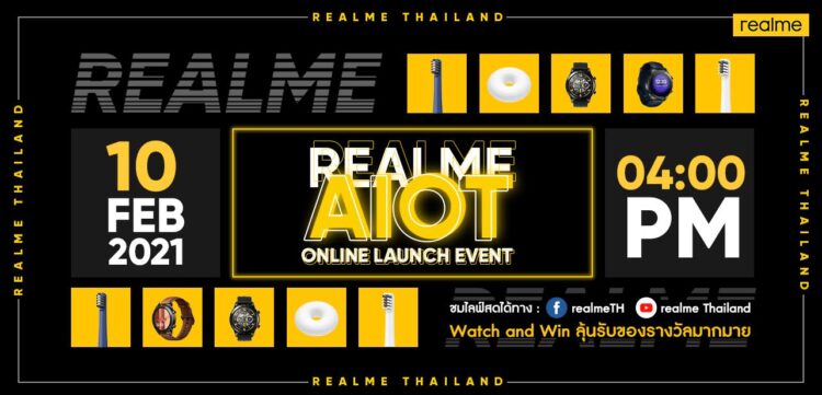 เตรียมตัวให้พร้อมกับถ่ายทอดสดงานเปิดตัวงาน realme AIoT Online Launch Event ในวันที่ 10 กุมภาพันธ์นี้ เวลา 16:00น.ผ่านช่องทางเพจ realme TH และ Youtube channel : realmeThailand พร้อมกิจกรรมลุ้นรับของรางวัลมากมาย สามารถติดตามความพิเศษต่างๆ เกี่ยวกับผลิตภัณฑ์ AIoT ของ realme ได้ทาง https://www.facebook.com/realmeTH