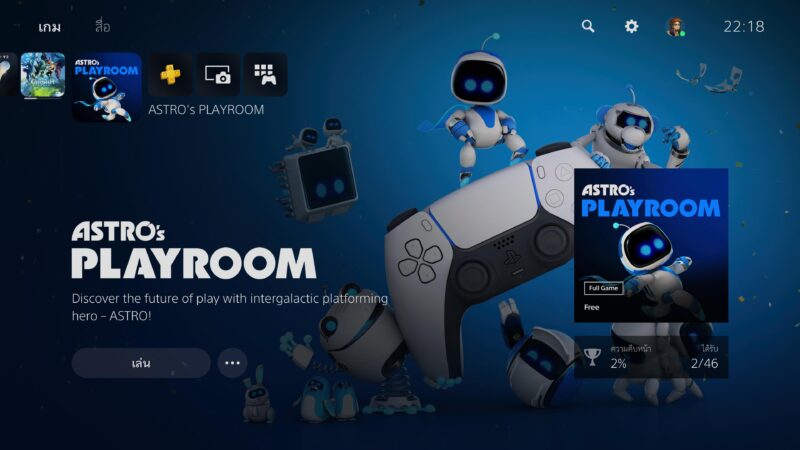 แนะนำให้เล่นเกม ASTRO PlayRoom ที่ติดตั้งมาในเครื่องจากโรงงานแล้ว จะเป็นเกมที่โชว์ความสามารถของจอย DualSense ได้ดีมาก