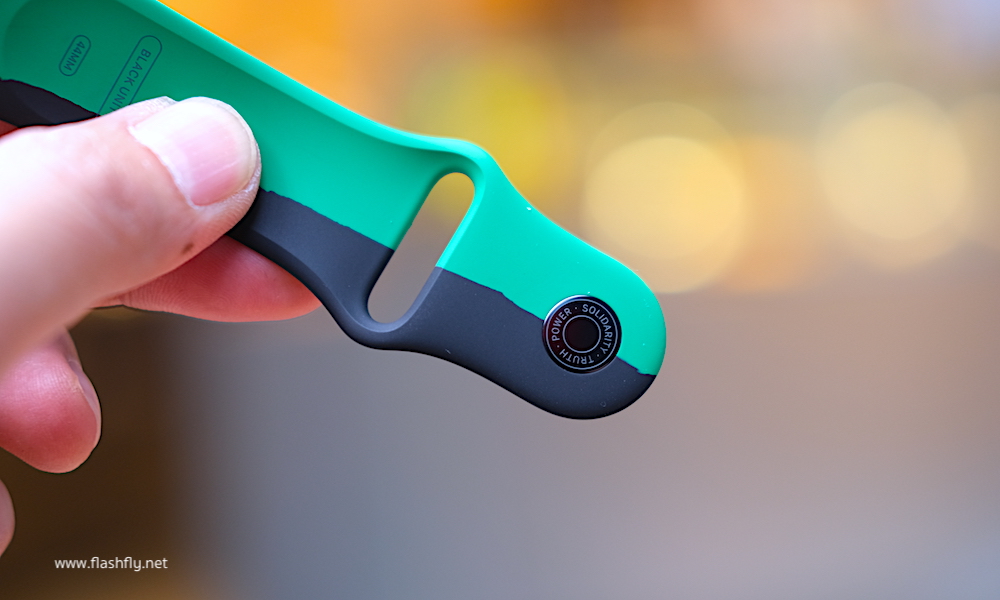 สาย Black Unity Sport Band มาพร้อมตัวล็อคแบบเสียบหมุด ที่ได้รับการสลักข้อความ Truth. Power. Solidarity. ด้วยเลเซอร์