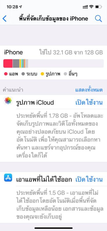 - จะมี คำแนะนำ ที่เราสามารถกด เปิดใช้งาน และระบบจะเคลียร์ข้อมูลให้เราโดยอัตโนมัติไม่ต้องทำอะไรเพิ่มเติม