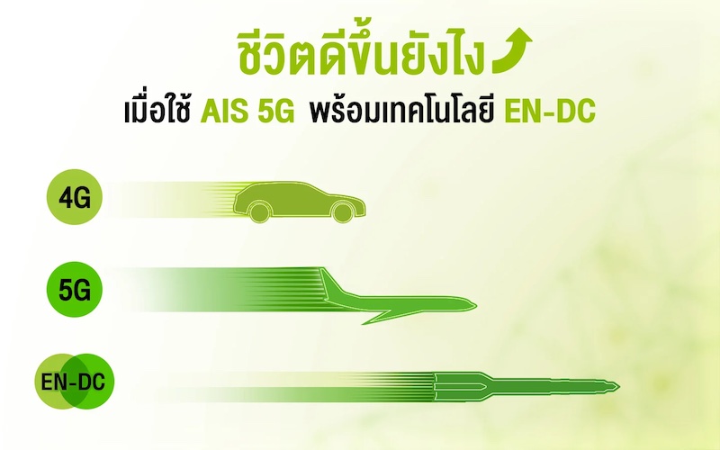 นอกจากความแรงของ 5G แล้ว สมาร์ทโฟน 5G จะได้รับประโยชน์จากการเชื่อมต่ออินเทอร์เน็ตอย่างเต็มที่ เมื่อใช้งานบนเทคโนโลยี EN-DC จาก AIS ดังนั้น การเลือกใช้บริการ 5G เพียงอย่างเดียวอาจไม่เพียงพอ แต่ต้องมองไปถึงการรองรับเทคโนโลยีที่สามารถผสานการทำงานร่วมกับระหว่าง 4G กับ 5G ได้ด้วย เพื่อให้สมาร์ทโฟนสามารถใช้งานออนไลน์ได้อย่างรวดเร็ว ราบรื่น และไม่สะดุด