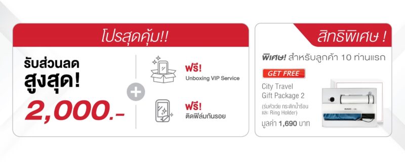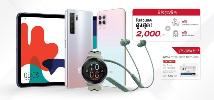 หัวเว่ยจัดโปรโมชันสินค้าลดราคาพิเศษ พร้อมของสมนาคุณจำนวนจำกัด สำหรับลูกค้าที่สั่งซื้อสินค้าบนHUAWEI Online Store และชำระเงินพร้อมรับสินค้าที่ HUAWEI Experience Store สาขาที่ร่วมรายการ ตั้งแต่วันที่ 23 – 28 กุมภาพันธ์ 2564
