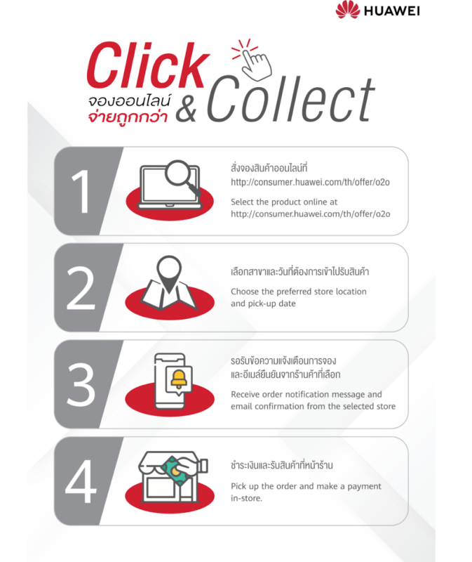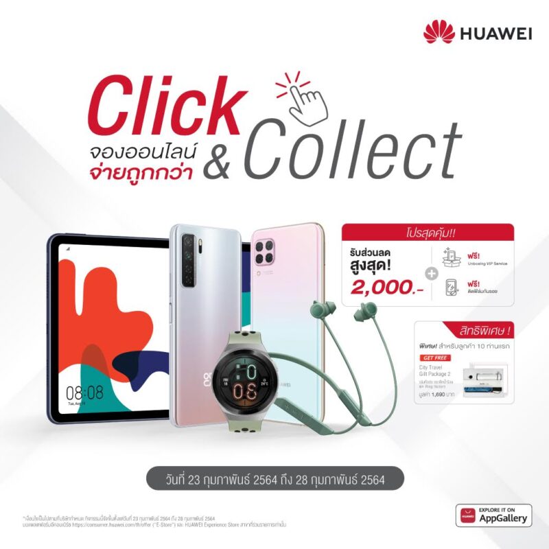 ครั้งแรกของ Huawei กับบริการ Click & Collect กดซื้อปั๊บ รับเลยที่ร้าน จัดโปรฯ จองออนไลน์ จ่ายถูกกว่า พร้อมของแถมและบริการสุดพิเศษ ตั้งแต่วันที่ 23 – 28 กุมภาพันธ์นี้