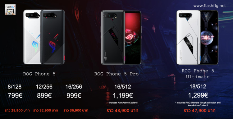 ROG Phone 5 Ultimate มาพร้อม RAM 18GB + ROM 512GB ราคา 1,299 ยูโร หรือราว 47,900 บาท เริ่มวางจำหน่ายในเดือนพฤษภาคม 2021