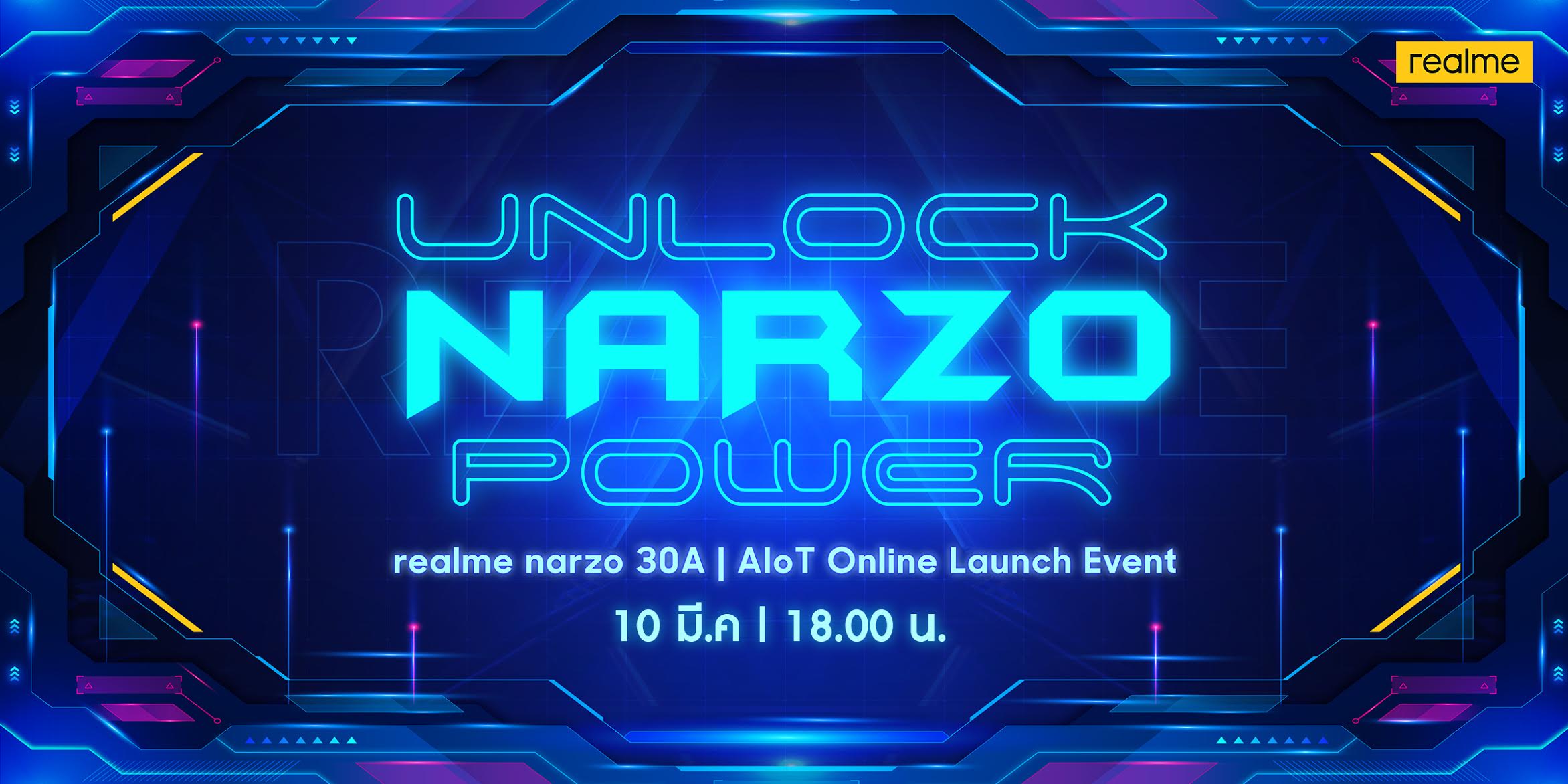 พลาดไม่ได้กับสมาร์ทโฟนขุมพลังแห่งเกมมิ่งและผลิตภัณฑ์ AIoT โดยรับชมความทรงพลังพร้อมกันทั่วประเทศผ่าน Live ถ่ายทอดสดในวันที่ 10 มีนาคมนี้ เวลา 18:00 น. ทางเพจ realme TH ทาง Youtube channel : realmeThailand และ Shopee สามารถติดตามรายละเอียดเพิ่มเติมได้ที่ https://www.facebook.com/realmeTH