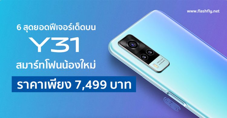 Vivo Y31 ยังมาพร้อมกับฟีเจอร์เด็ด ๆ อีกมากมาย พร้อมจำหน่ายแล้วในราคาเพียง 7,499 บาท ที่ Vivo Brand Shop ทุกสาขา ตัวแทนจำหน่ายทั่วประเทศ และช่องทางออนไลน์ Vivo Official Online Store