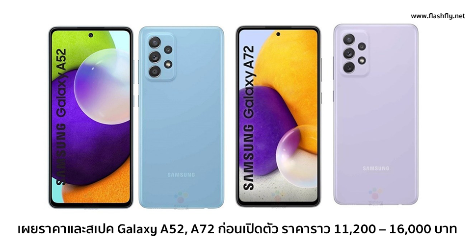 เผยราคาและสเปค Samsung Galaxy A52, A72 ก่อนเปิดตัว ราคาราว 11,200 – 16,000 บาท