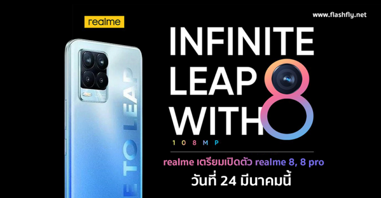 realme ได้คอนเฟิร์มวันเปิดตัวของ realme 8 และ 8 Pro ในวันที่ 24 มีนาคมเวลา 7:30 p.m. ในประเทศอินเดีย โดยชูโรงระบบกล้องใหม่ความละเอียด 108 ล้านพิกเซลเซนเซอร์ ISOCELL HM2 ขนาด 1/1.52 นิ้วจาก Samsung