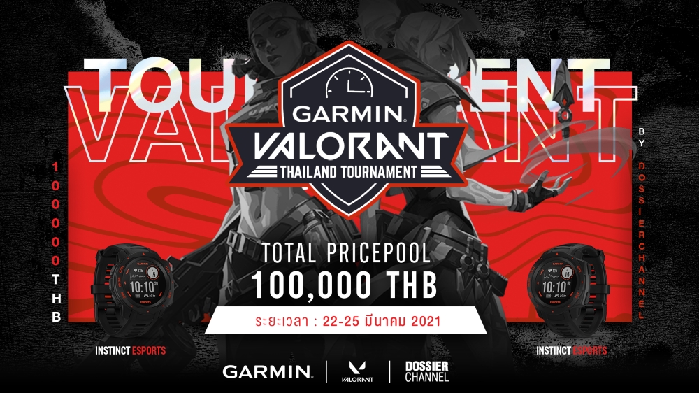“ความสนุกยังไม่จบ การ์มินแท็กทีม Dossier Channel จัดแข่งทัวร์นาเมนต์เกม Valorant ชิงรางวัล เพื่อฉลอง การเปิดตัวจีพีเอสสมาร์ทวอทช์สายเกมเมอร์รุ่นล่าสุด โดยร่วมมือกับเพจ Dossier Channel ช่องจัดแข่งเกมออนไลน์ชื่อดังบน Twitch และ Facebook เปิดรับสมัครเกมเมอร์ชาวไทยทีมละ 5 คน เพื่อร่วมแข่งในทัวร์นาเมนต์เกม Valorant ท้าประลองความเร็วและความแม่นในการยิง เพื่อชิงเงินรางวัลและสมาร์ทวอทช์ Instinct Esports Edition จำนวน 5 เรือนจากการ์มิน รวมมูลค่ากว่า 100,000 บาท” คุณสกาย กล่าวเสริม