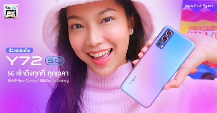 มาแล้ว!! Vivo Y72 5G สมาร์ทโฟน 5G รุ่นแรก ที่ออกแบบมาสำหรับทุกคน ซึ่งหมายถึงสามารถเป็นเจ้าของได้ง่ายตามสไตล์ Y Series โดยมีจุดเด่นที่ดีไซน์สวยงามให้ความรู้สึกไม่ต่างจากสมาร์ทโฟนเรือธง ใช้ชิปประมวลผลระดับ 7 นาโนเมตร ความจำภายในขนาดใหญ่ ความจุแบตเตอรี่สูง มาพร้อมกล้องหลัง 64MP Triple Camera ที่ให้ภาพถ่ายคมชัดทุกสถานการณ์ ซึ่งทีมงาน @flashfly เคยนำเสนอแกะกล่องและพรีวิวไปแล้วก่อนหน้านี้